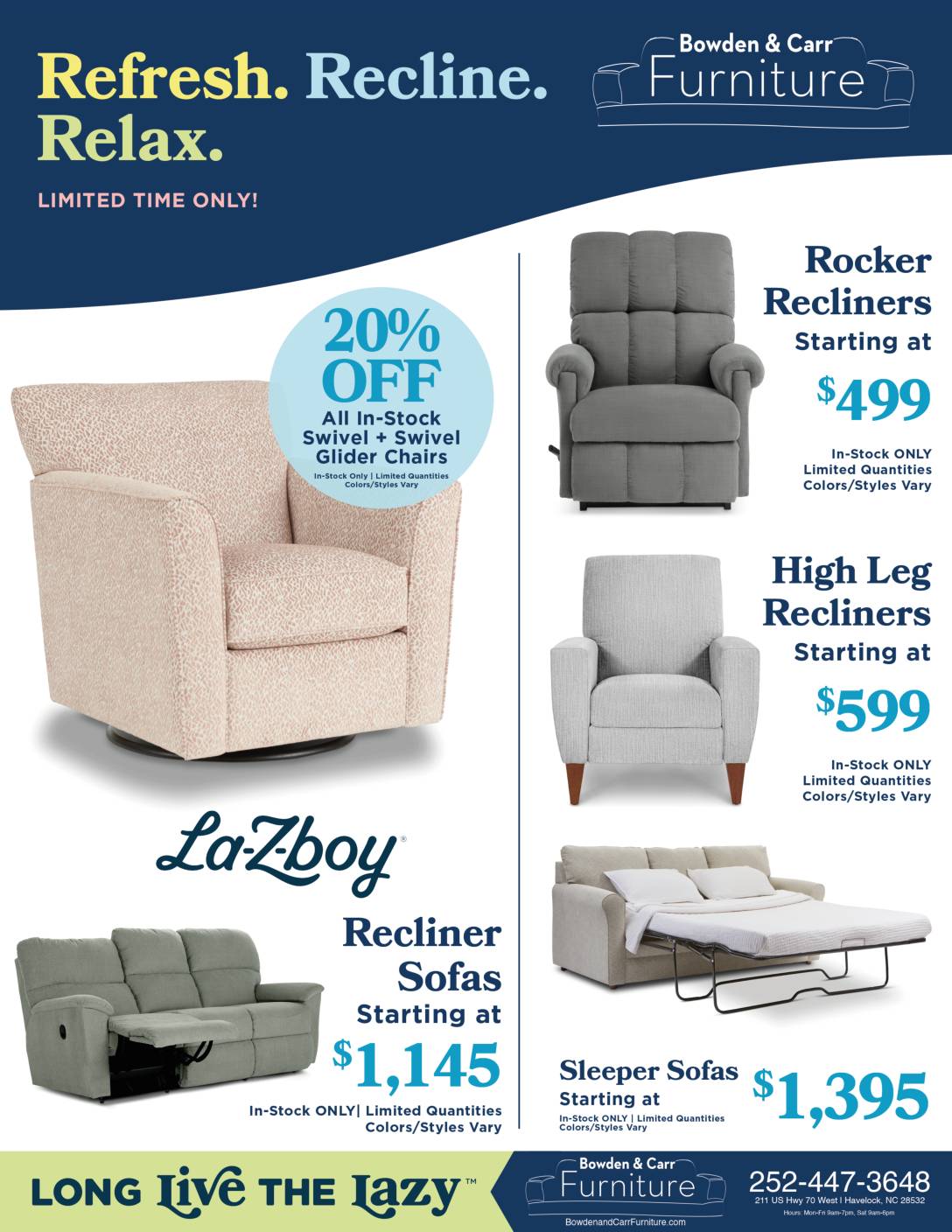 La-Z-Boy Recliner Sofas Starting at $1,145. Rocking Recliners Starting at $499. High Leg Recliners Starting at $599. Sleeper Sofas Starting at $1,395!
